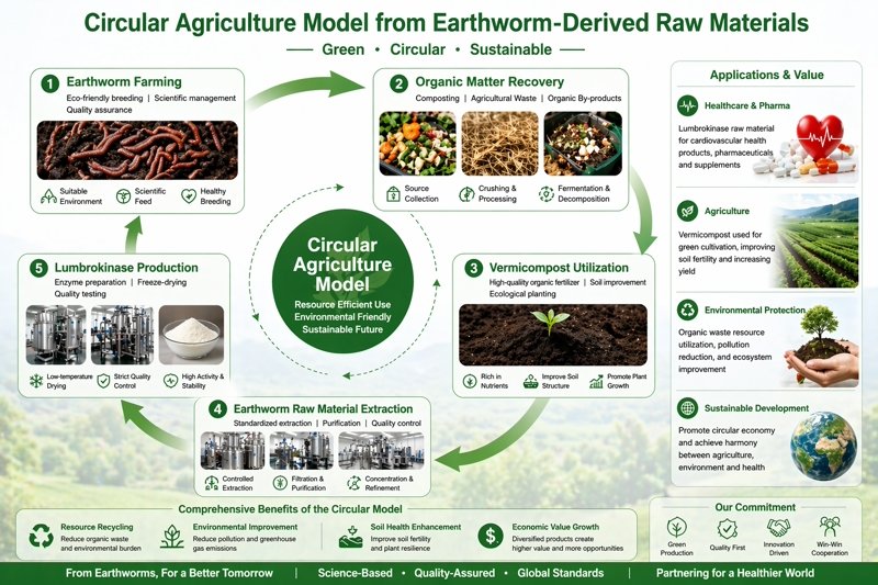 For lumbrokinase manufacturers, sustainability is not just about looking green. It is about building a system that uses raw materials well, keeps losses low, manages water and by-products carefully, and maintains stable quality without burning resources unnecessarily. In earthworm-derived ingredients, that conversation gets even more interesting, because the upstream supply chain can connect to circular agriculture, organic matter recycling, and lower-emission protein systems when managed properly. Research on earthworm protein has pointed out that earthworm culture can offer higher protein conversion efficiency and lower greenhouse gas production than conventional livestock systems, which is one reason the category keeps attracting attention as a functional ingredient source.